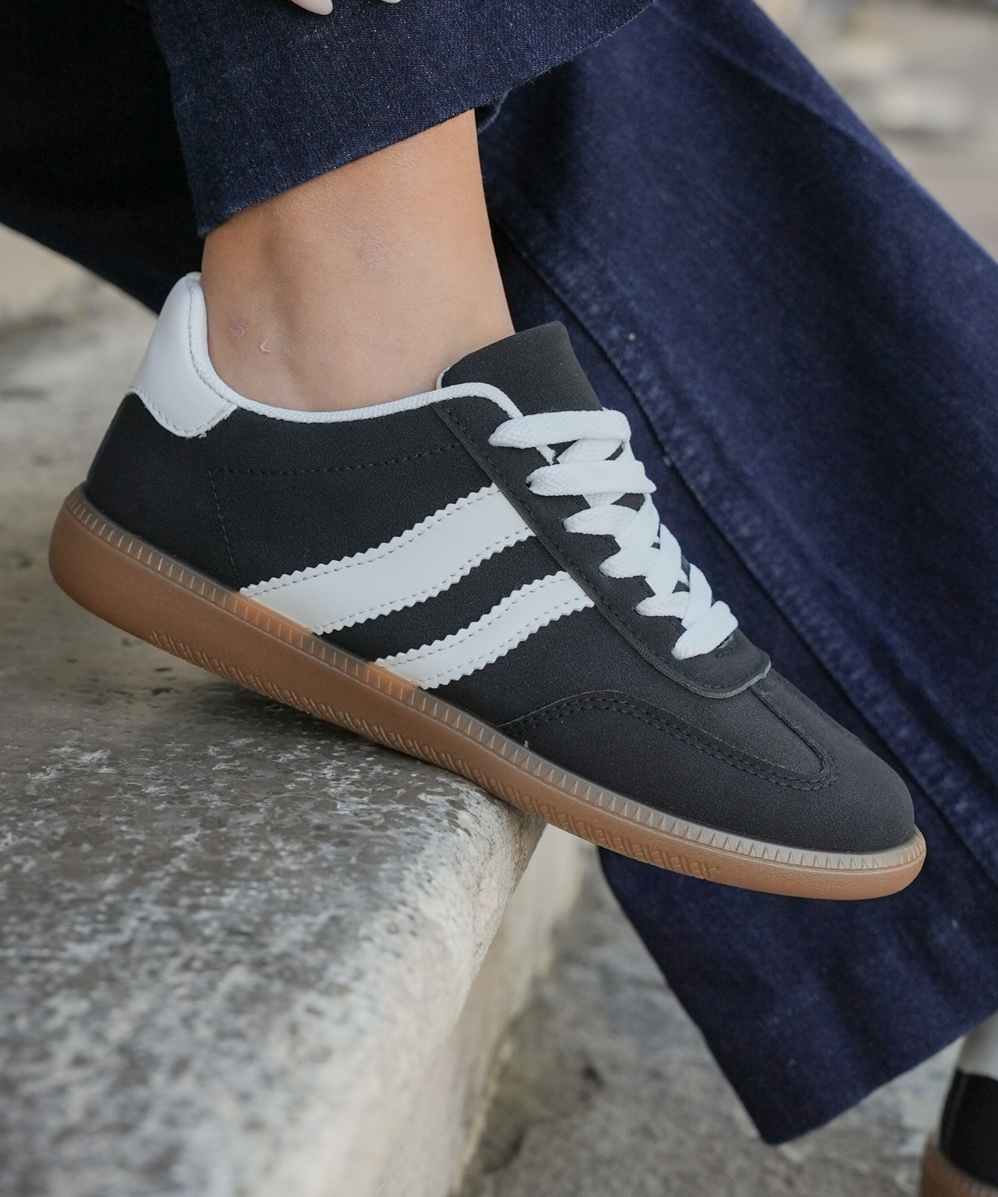 SNEAKERS NOIRES FEMME STYLE RÉTRO AVEC SEMELLE GOMME