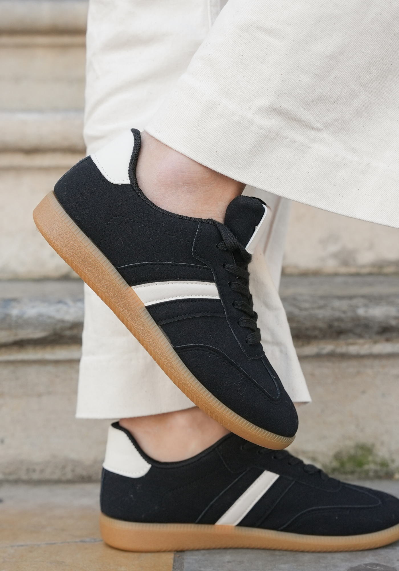 Craquez pour ces sneakers noires à bande blanche, au look rétro inspiré des années 90. Leur design minimaliste et tendance s’accorde facilement avec toutes vos tenues, du jean casual à la robe féminine.