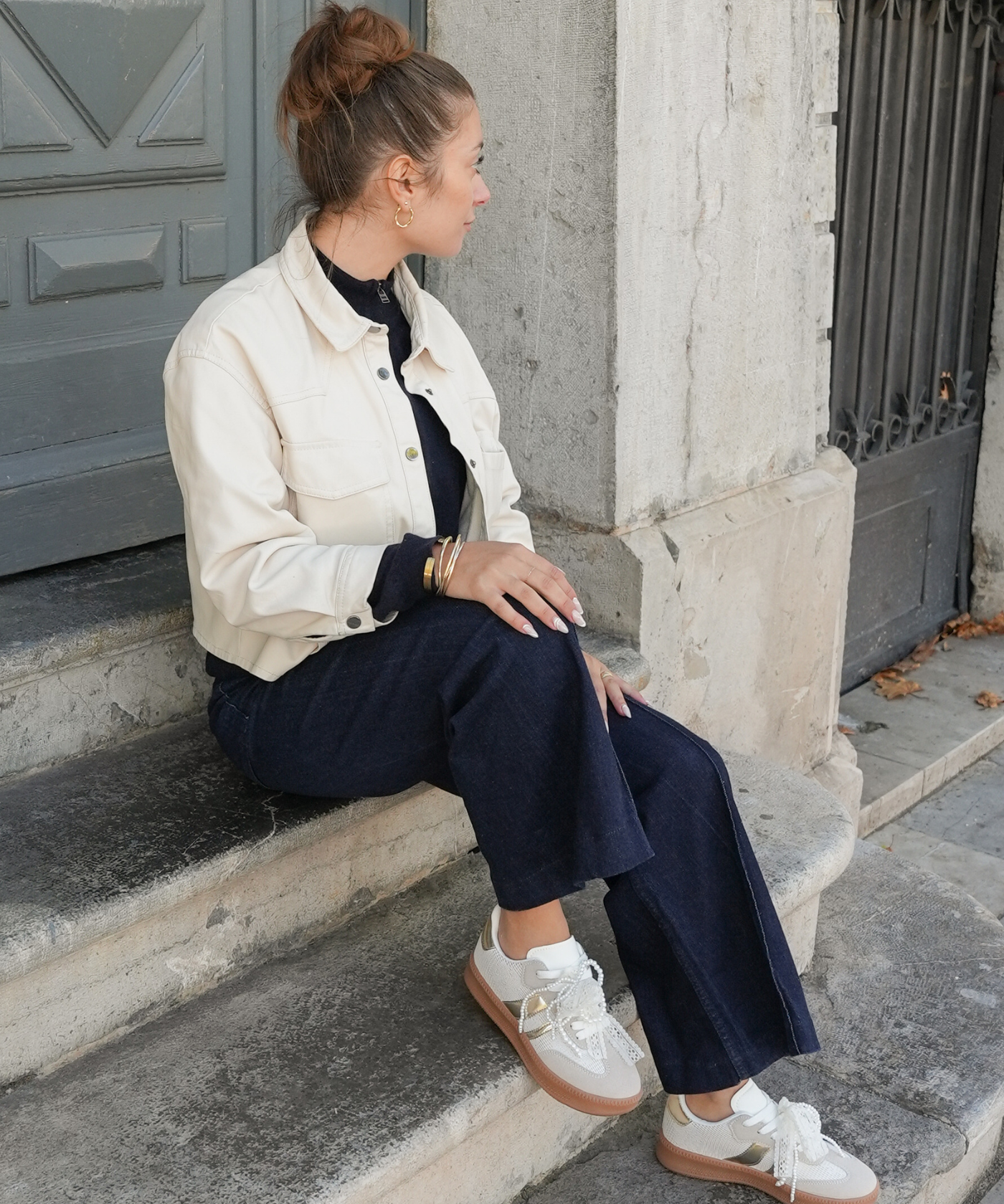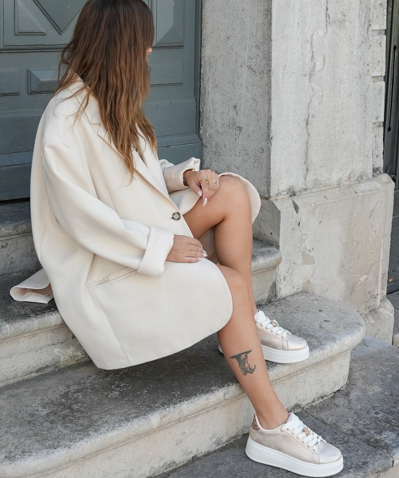 SNEAKERS CHUNKY BEIGE ET DORÉES FEMME STYLE TENDANCE